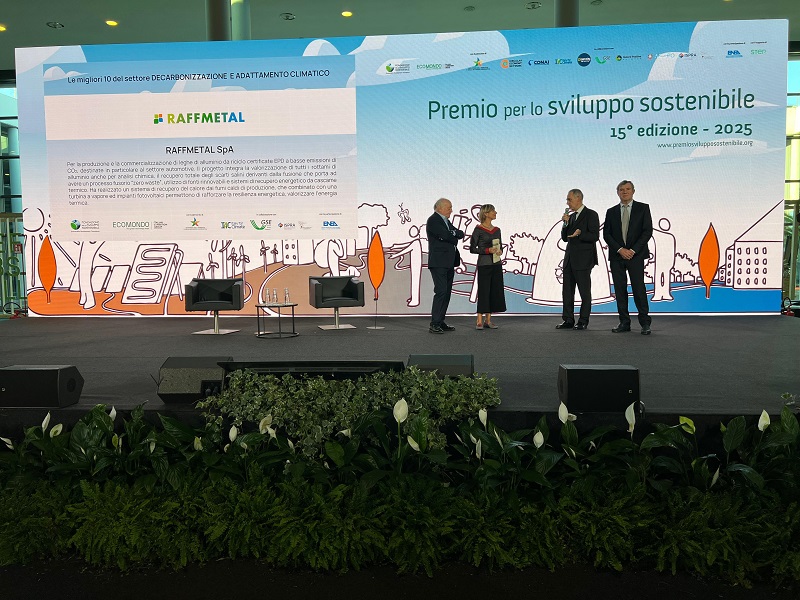 Raffmetal S.p.A. wurde unter die zehn Gewinnerunternehmen der Ausgabe 2025 des Nachhaltigkeitspreises gewählt, der von der Stiftung für Nachhaltige Entwicklung und der Italian Exhibition Group – Ecomondo mit der Schirmherrschaft des Ministeriums für Umwelt und Energiesicherheit (MASE) vergeben wird.